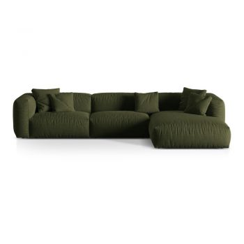 Coltar modular dreapta 4 locuri, Bloom-86, Micadoni Home, 316x310x95 cm, tesatura structurata, verde muschi